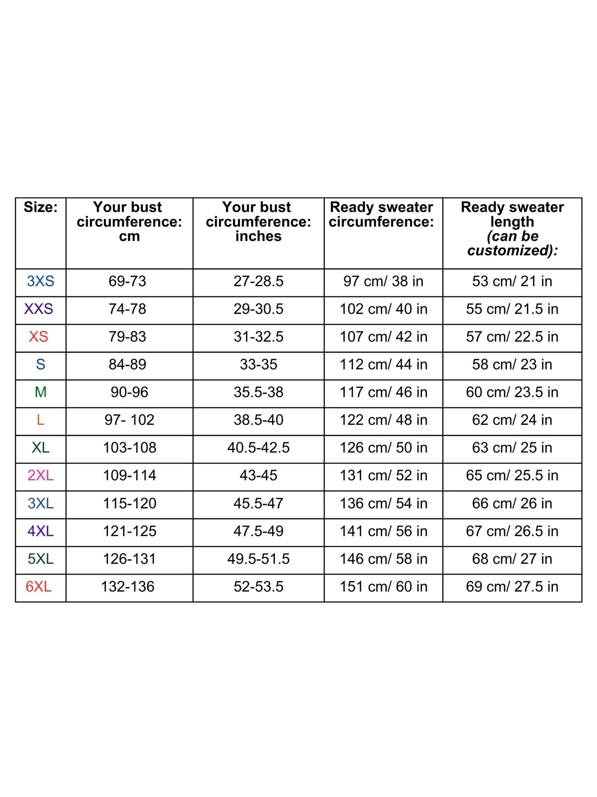 Size: There are 12 sizes to choose from 3XS-XXS-XS-S-M-L-XL-2XL-3XL-4XL-5XL-6XL. Check out the chart on the photo to help you decide which size to choose.