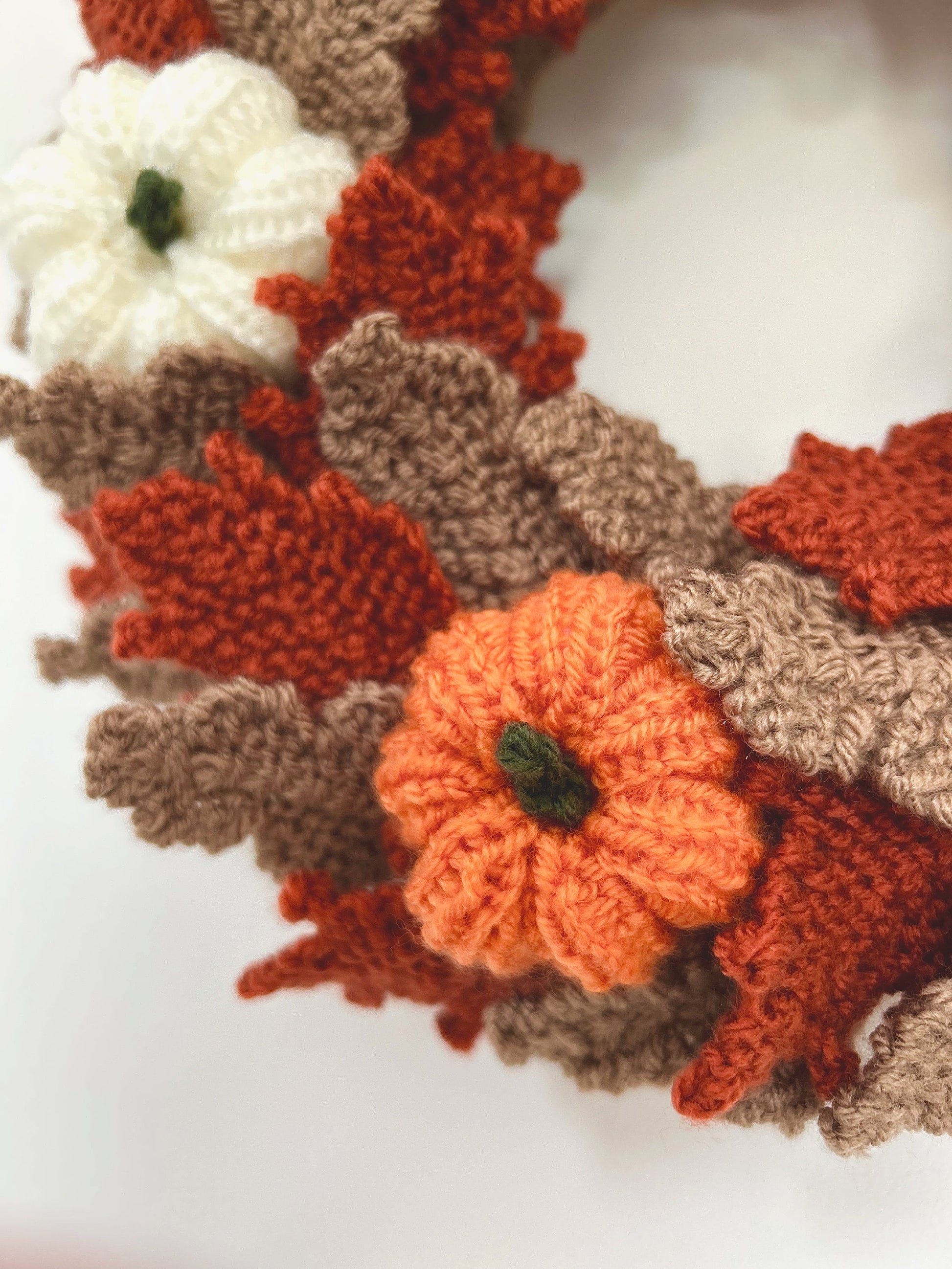Designed for all skill levels, the pattern includes step-by-step instructions for each element, along with helpful photos and tips to guide you in arranging the final wreath. Whether for your door or mantel, this handmade wreath adds a festive, farmhouse touch that you’ll love to display year after year. Embrace the beauty of fall with a unique, knitted masterpiece!