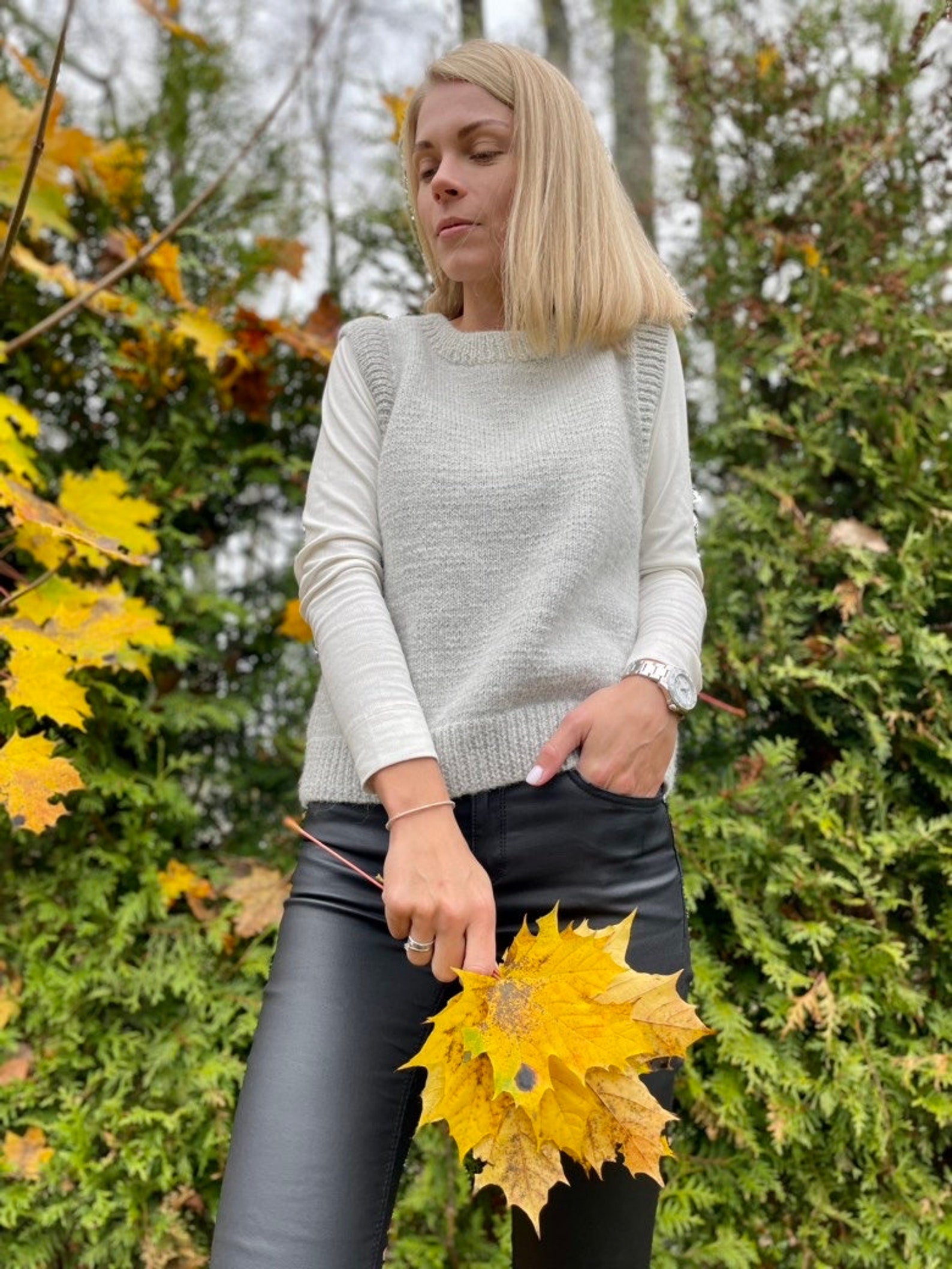 ● A pair of 2.5mm (US 1.5) circular needles 60 cm (24”) and longer for Magic loop, or dpns to work armhole and neckbands in the round. For front and back part ribbing you can use 2.5mm (US 1.5) both circular and straight needles